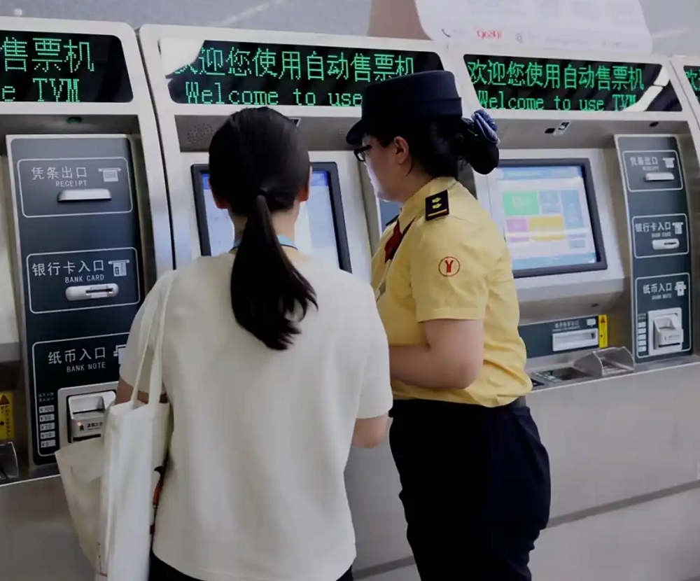 中国の市境越えの交通機関は全手に置いて実名制が実施されており、切符の購入には身分証明証が必要で、切符に名前(身分証明書番号)が記載されることになっているため、外国人は原則パスポートを持って窓口に並ぶ必要がある。(QR乗車可能なAPPも存在するが外国人では認証が難しい)